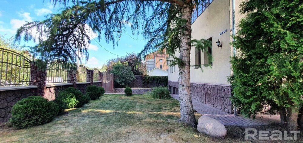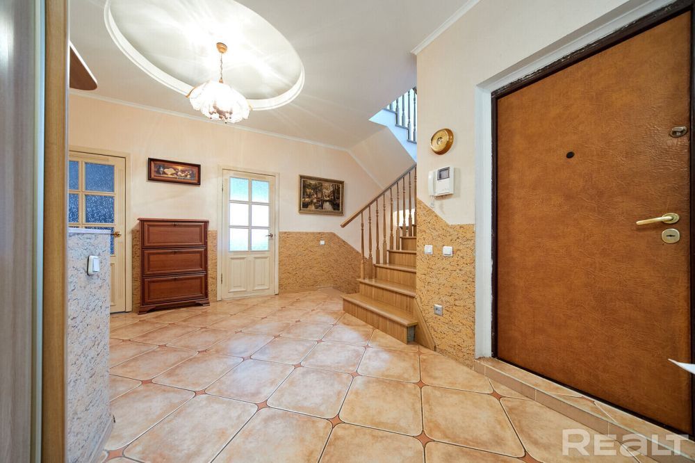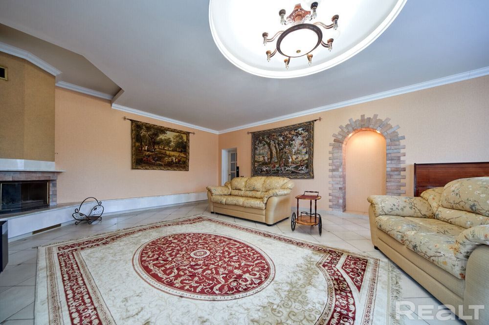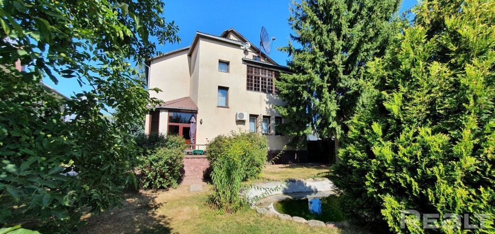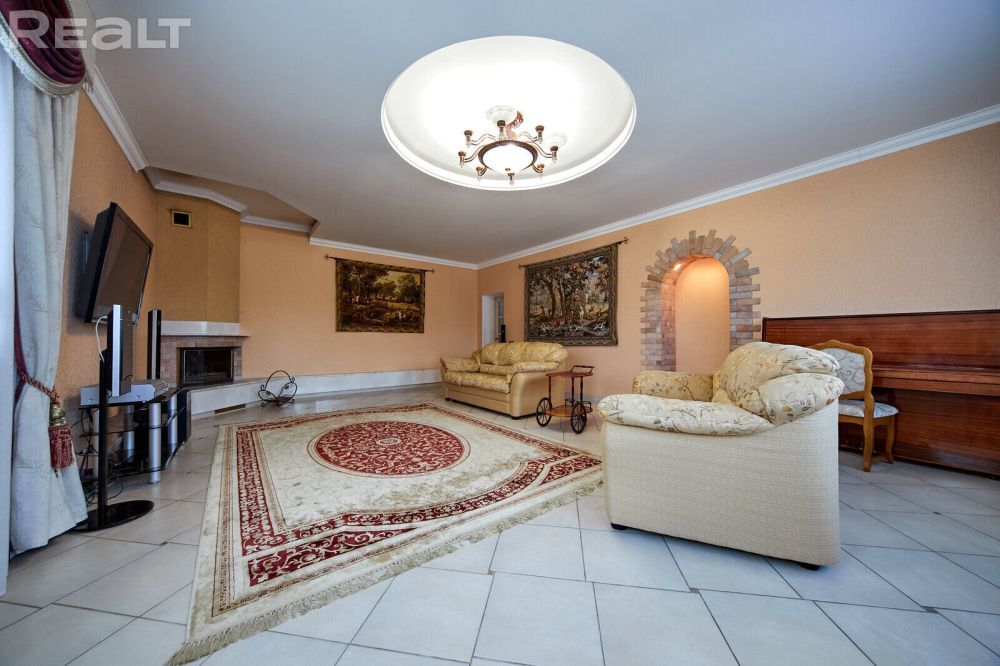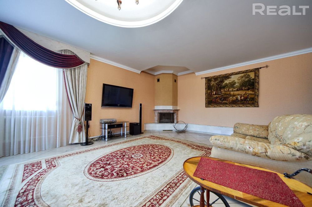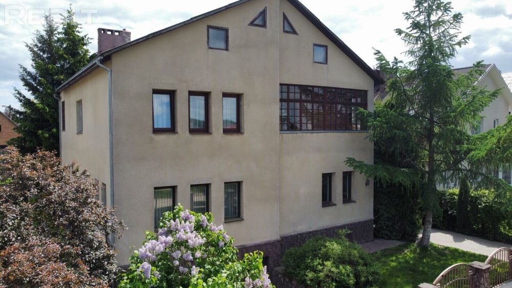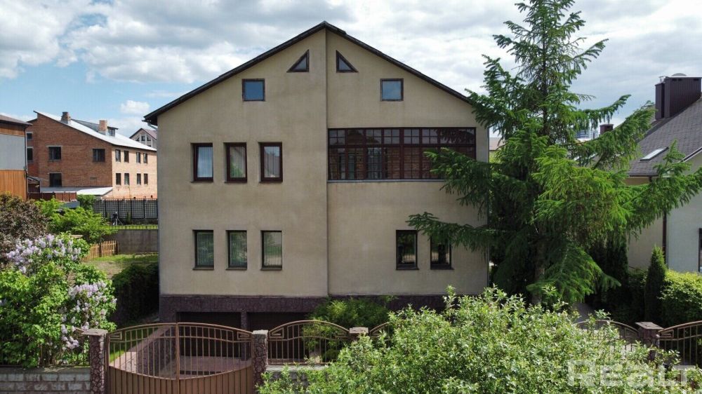 добротный коттедж построен из качественного красного кирпича, утеплен и оштукатурен декоративной штукатуркой.