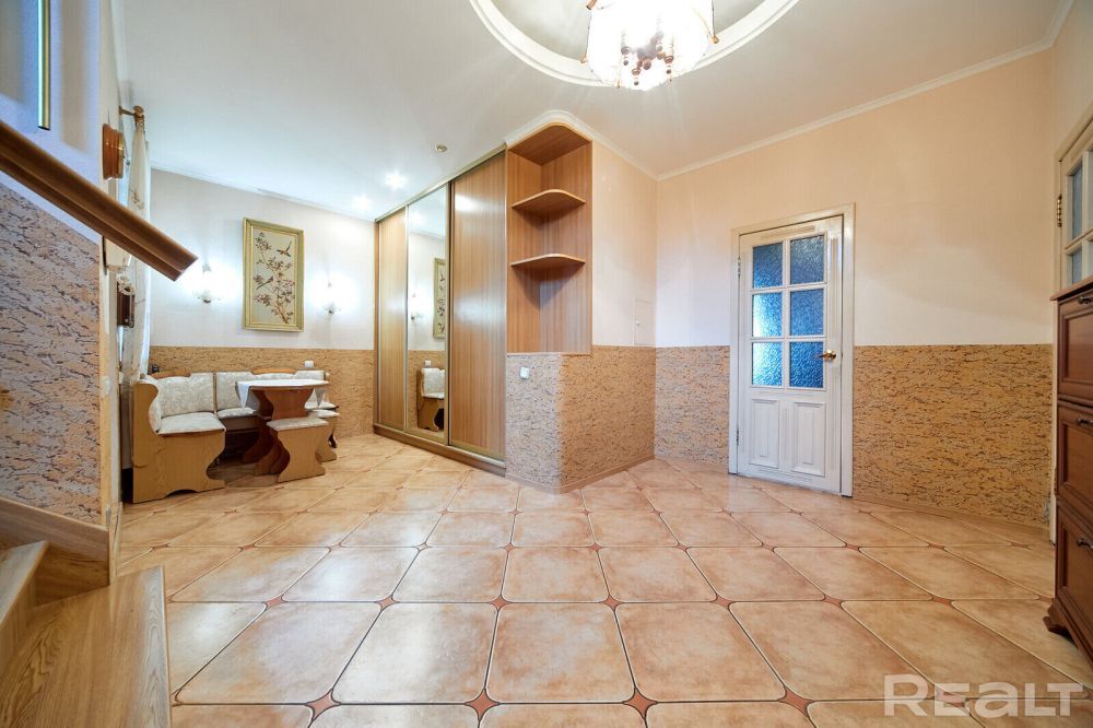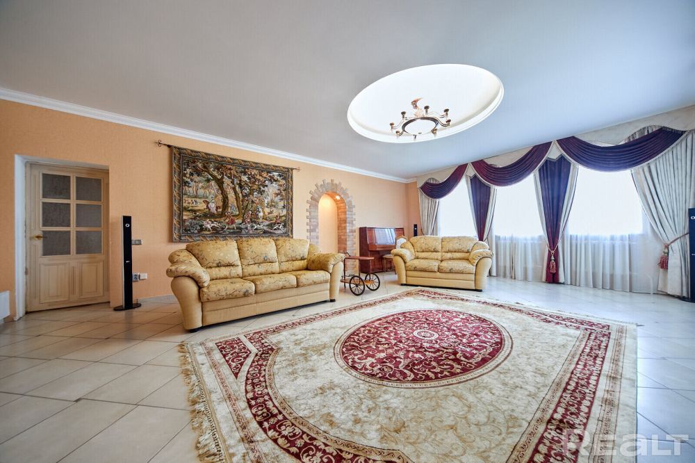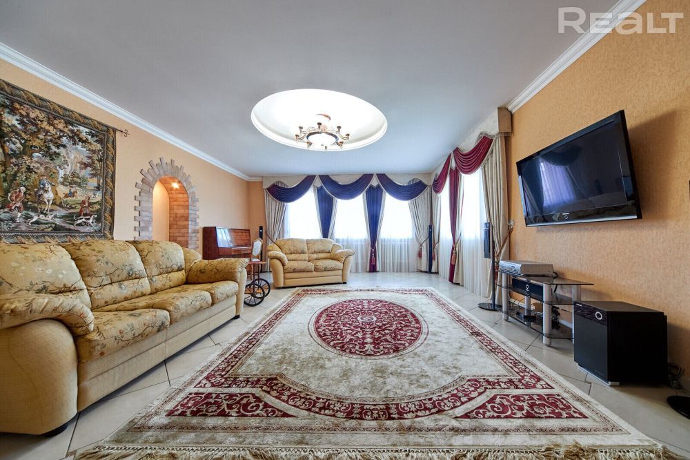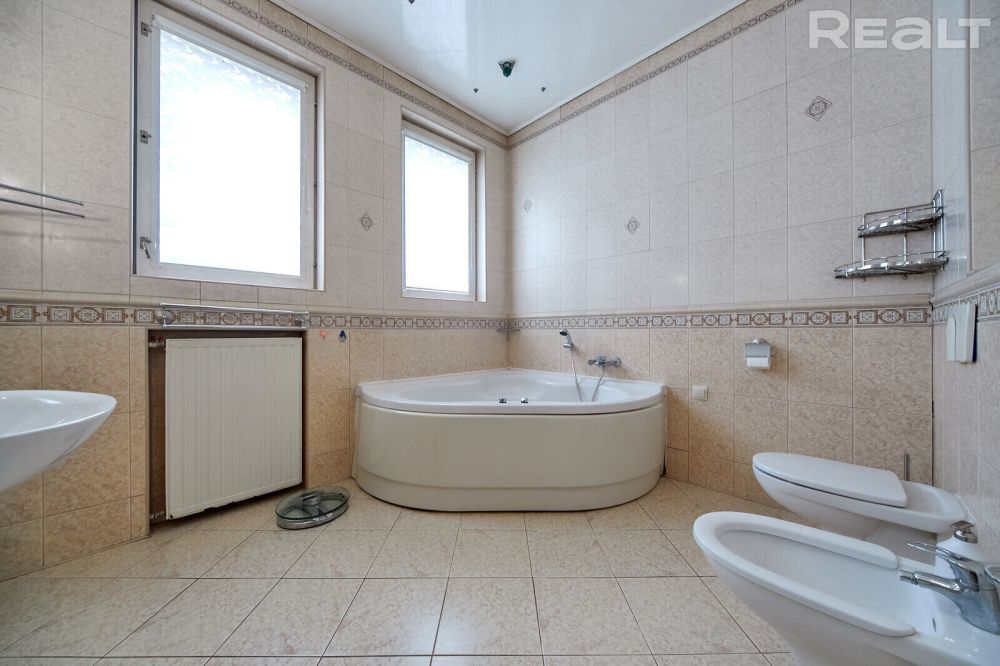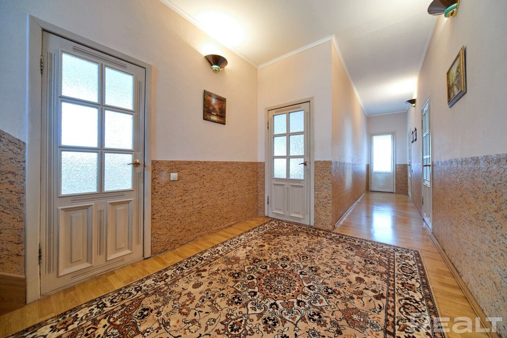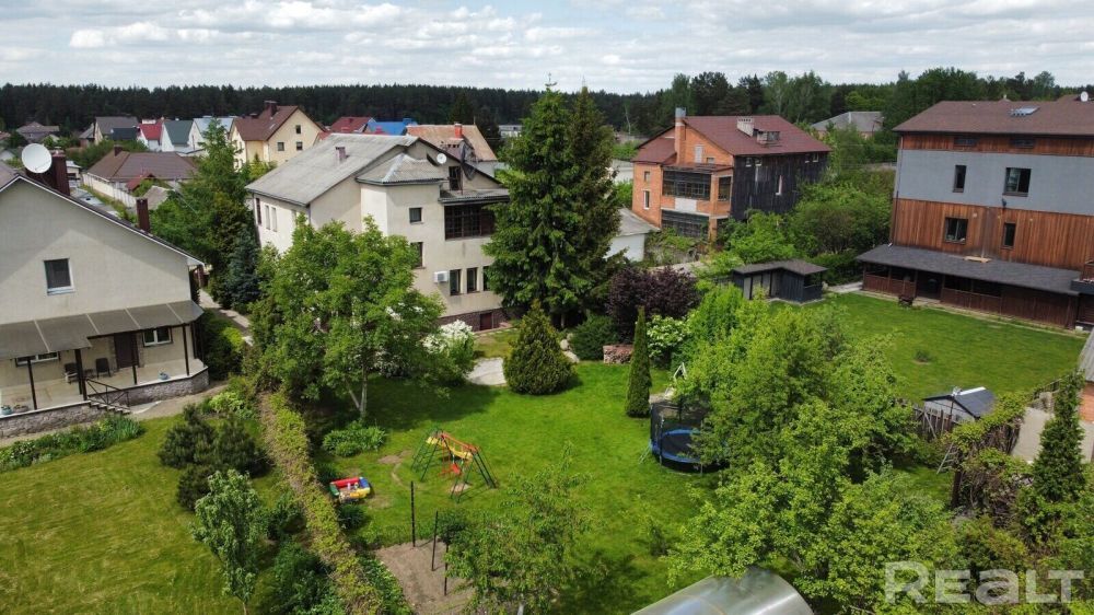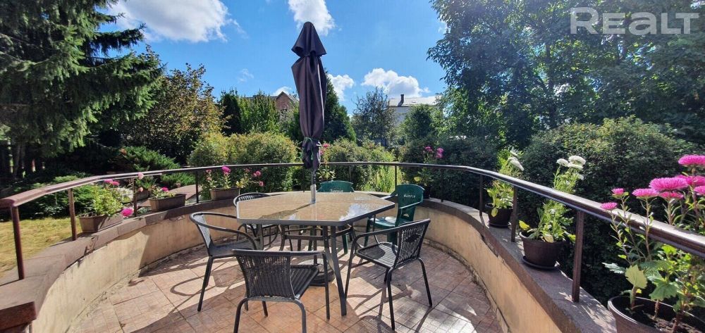 добротный коттедж построен из качественного красного кирпича, утеплен и оштукатурен декоративной штукатуркой.