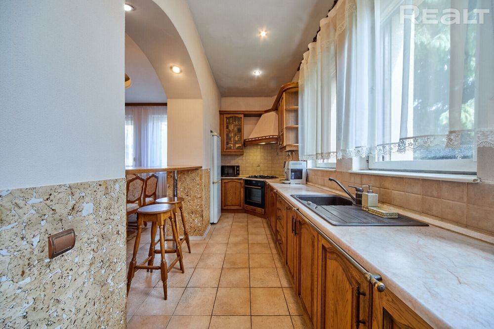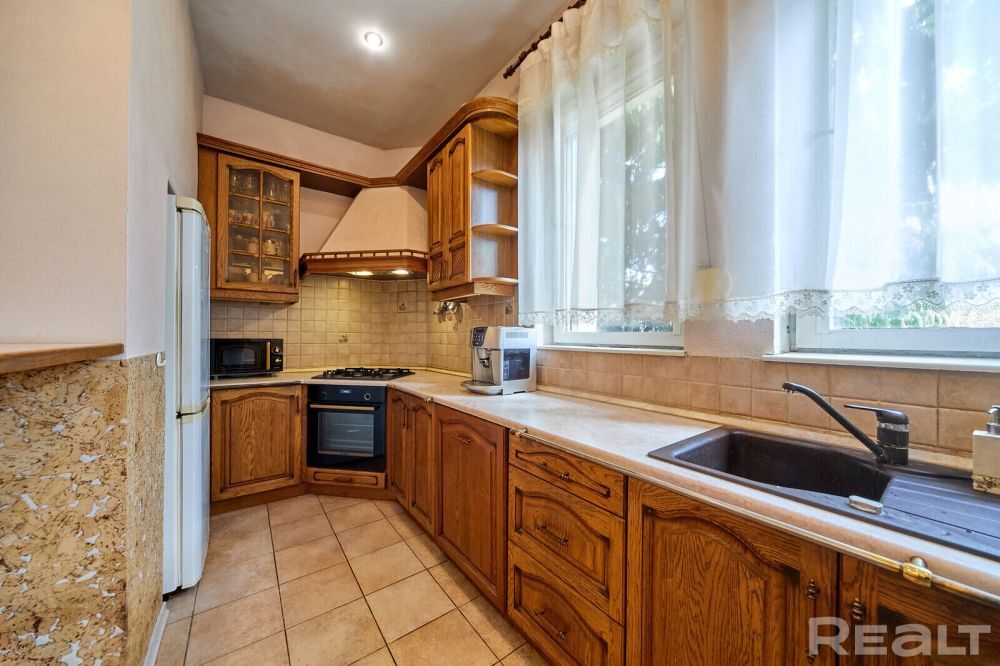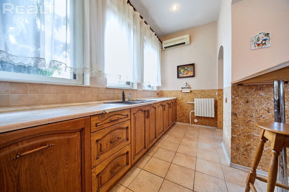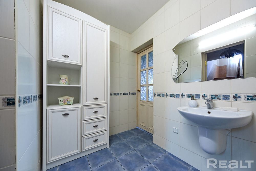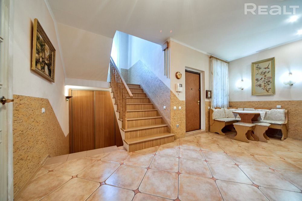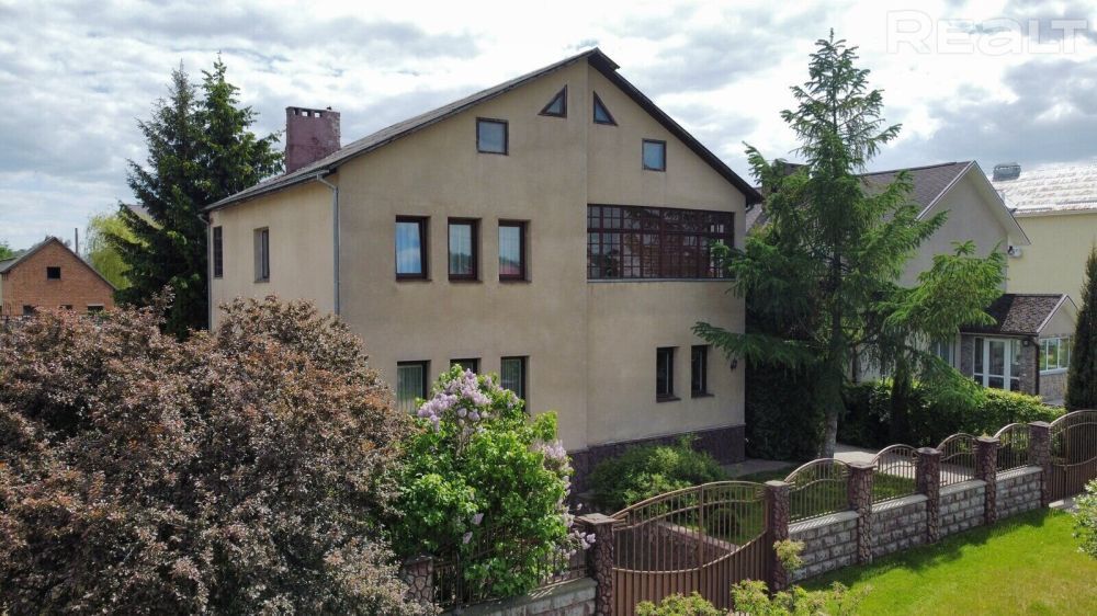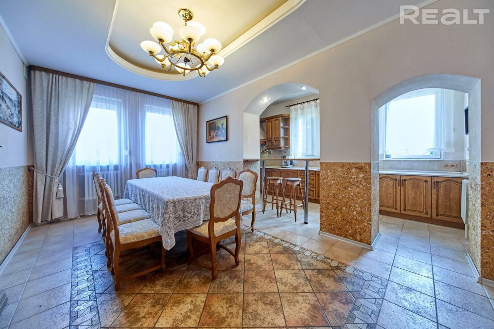 добротный коттедж построен из качественного красного кирпича, утеплен и оштукатурен декоративной штукатуркой.