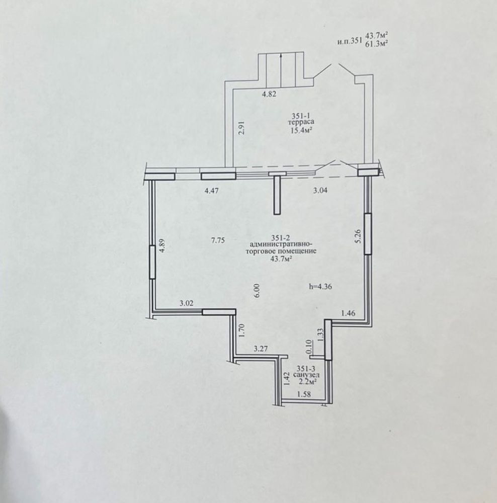 Общая площадь 61.3 кв.м. Площадь помещения 45,9 кв.м.