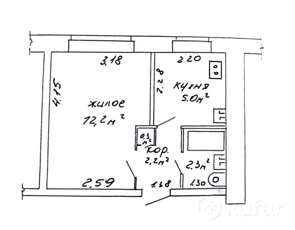 Общая площадь квартиры составляет 21,1 м.кв., жилая 12,0 м.кв, кухня 5,0 м.кв..