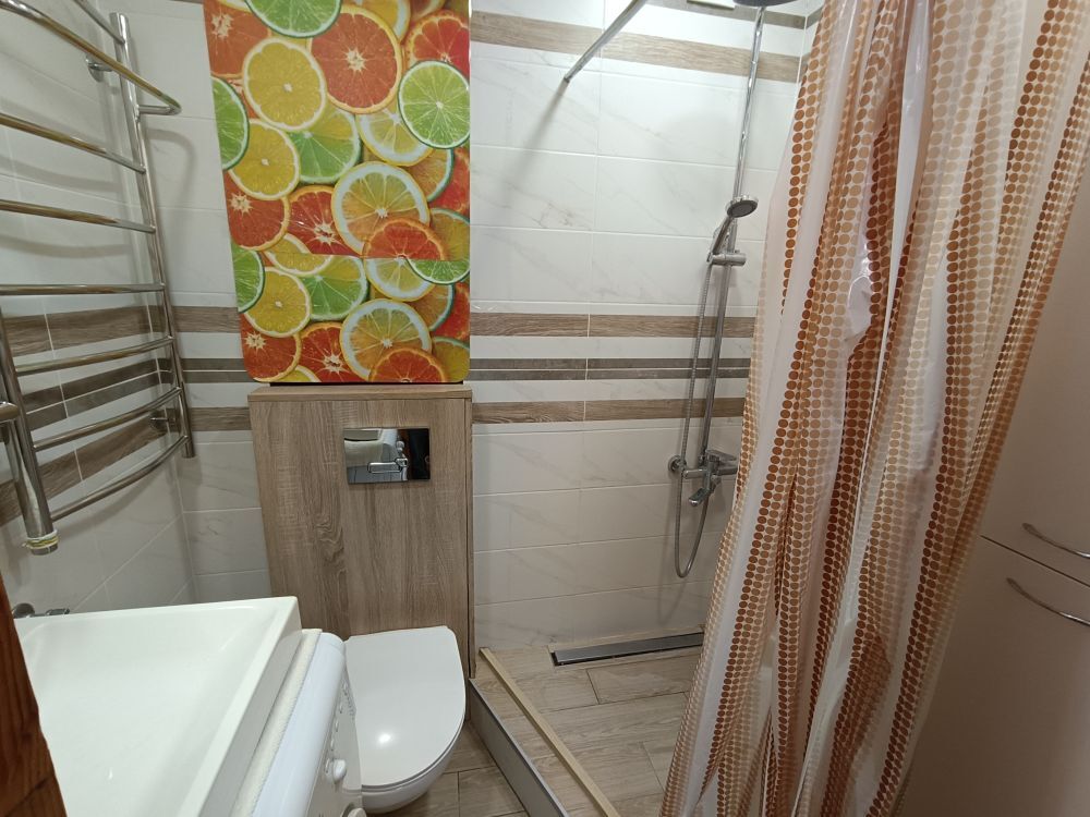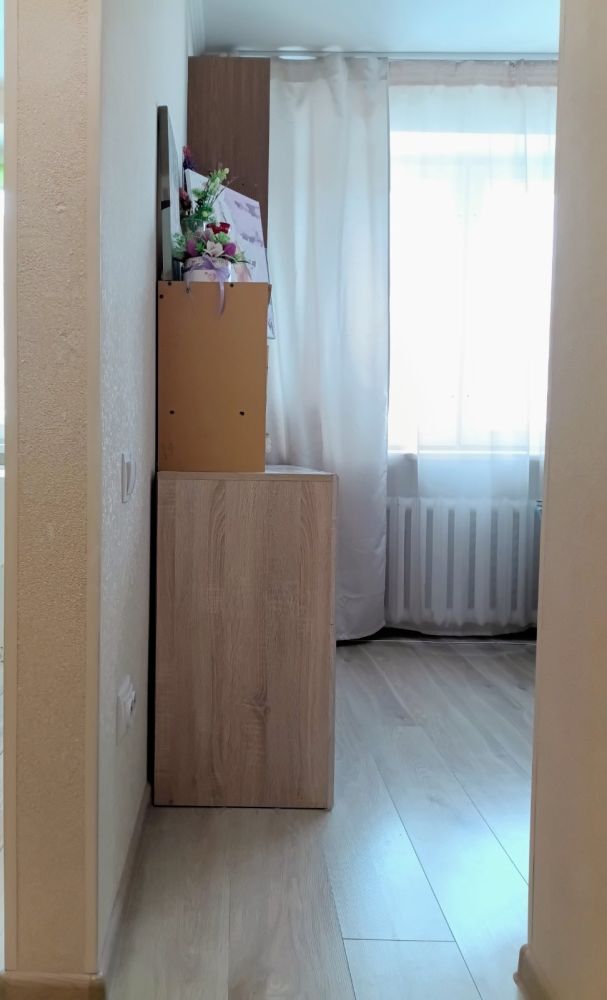 В квартире выполнен качественный ремонт, выравнены стены и потолки, качественный ламинат в комнате и на кухне, тёплый пол в коридоре и санитарном узле, санузел совмещён и оборудован современной сантехникой, установлен бойлер для подогрева воды (что обеспечит вас комфортом в период отключения горячей воды), подключен пакет услуг Zala (телефон, интернет, телевидение), в комнате установлен вместительный шкаф купе (нужно доделать фасады). Уютная квартира в светлых тонах, от доброжелательных и приятных собственников. Хорошие соседи.