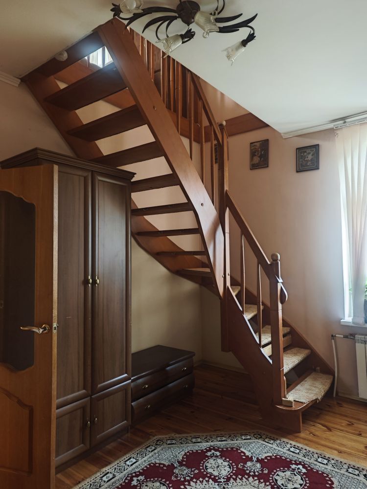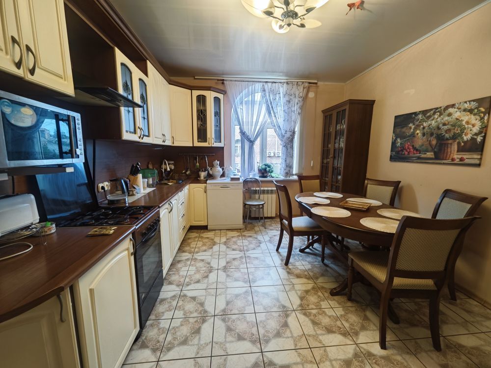 Внешние стены – красный кирпич, внутренние стены – газосиликатные блоки. Перекрытия – железобетонные как между цокольным и первым этажом, так и между первым и вторым. Крыша – металлочерепица (новая крыша установлена в 2018 году). Полы – плитка, дерево. Все окна – ПВХ стеклопакеты. Межкомнатные двери – массив. Встроенная кухня оборудована газовой варочной поверхностью, вытяжкой, установлен фильтр для воды.