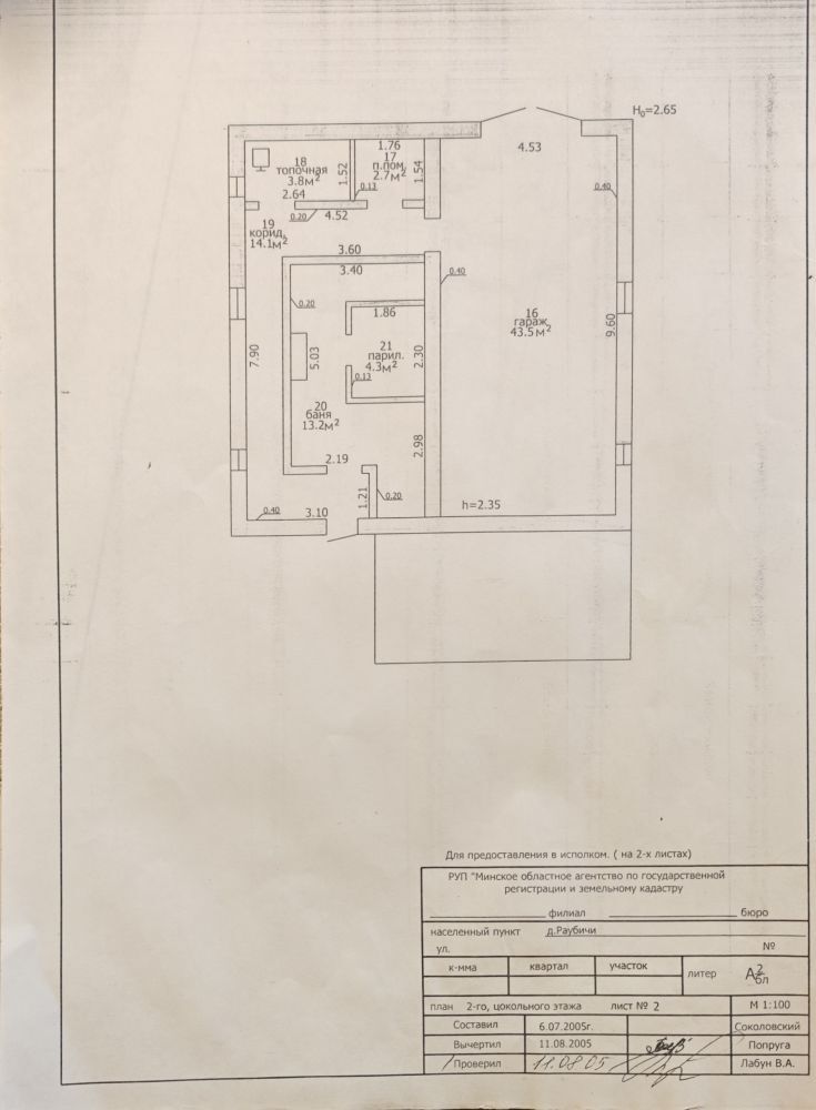 Цокольный этаж: гараж, оборудованный под мастерскую с ямой, баня, комната отдыха, санузел и топочная.