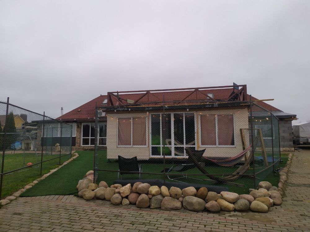 Хоз. постройка (189 м2) состоит из: бани, бассейна, комнат отдыха, гаража, сарая.