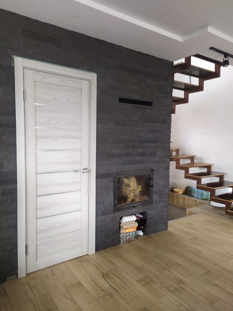 Первый этаж - прихожая, гостиная с кухонным оборудованием и камином, санузел.