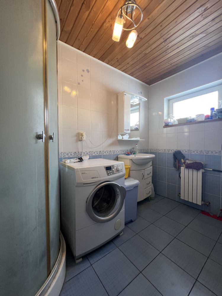 Первый этаж – просторная гостиная, переходящая в кухню , ванная с душевой кабинкой, прихожая, санузел, котельная.