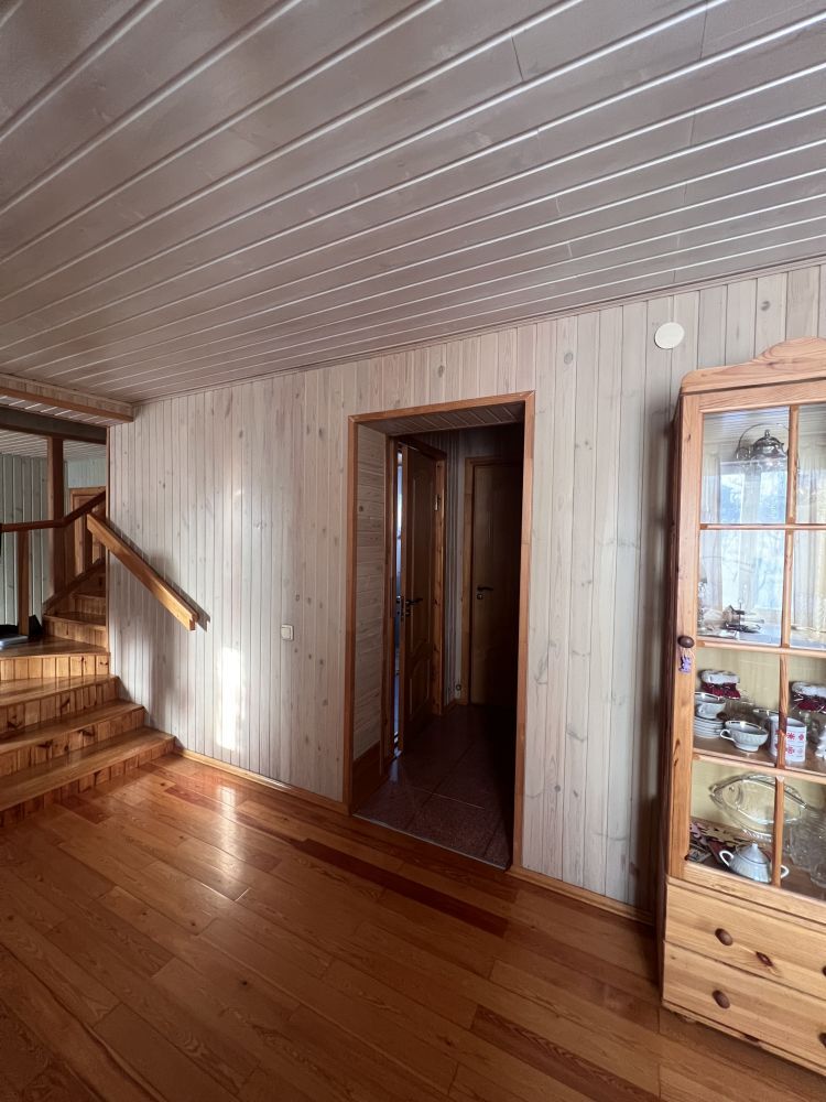 Описание коттеджа: Добротный дом сложен из кругляка ручной рубки, обшит блокхаусом. Дом очень теплый, экологичный с грамотной планировкой и правильно организованным пространством. Установлены деревянные стеклопакеты и подоконники из натурального дерева. Во всем доме установлены качественные чугунные батареи производства Buderus Чехия . Крыша шифер. Перекрытия между подвалом и первым этажом монолитная плита. Напольные покрытия – в кухне и жилых помещениях паркетная доска из лиственницы производства Словении, в кухне и санузлах плитка. Межкомнатные двери натуральное дерево. В гостиной смонтирован камин на дровах производства Ирландия, отделан облицовочной плиткой под натуральный камень. Полностью оборудованная кухня с техникой (посудомойка, плита) остается при продаже. Мебель и техника в доме по договоренности.