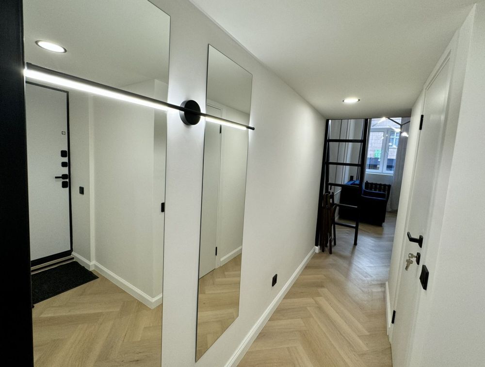 В квартире была выполнена замена всех коммуникаций и перезаливка стяжки. Окна на обе стороны.
