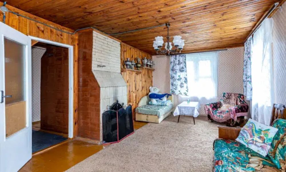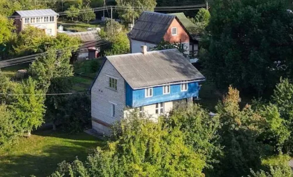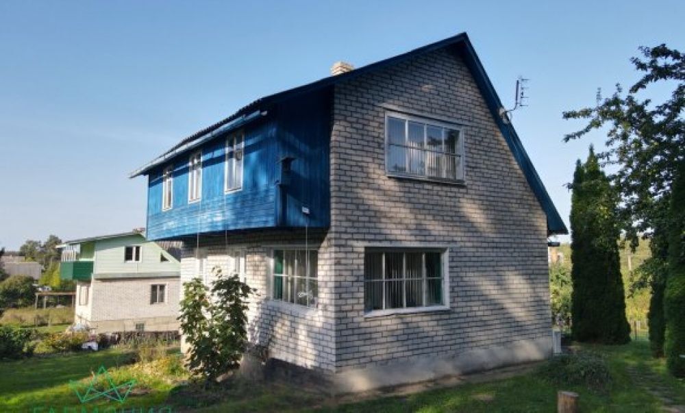 На участке стоит двухэтажный просторный дом( бревенчатый облицован кирпичом,расположен на возвышенности):