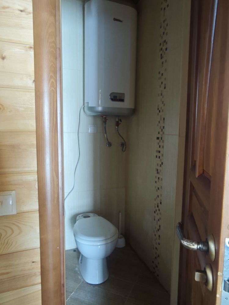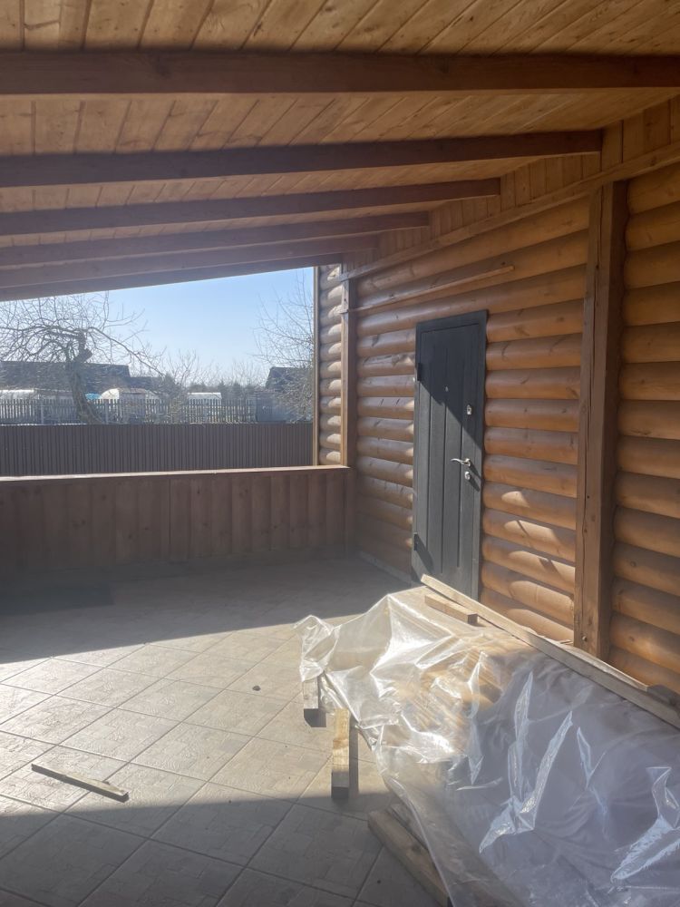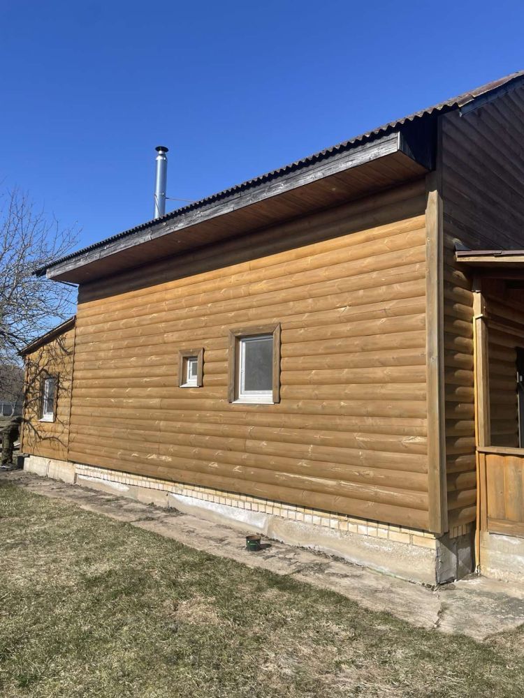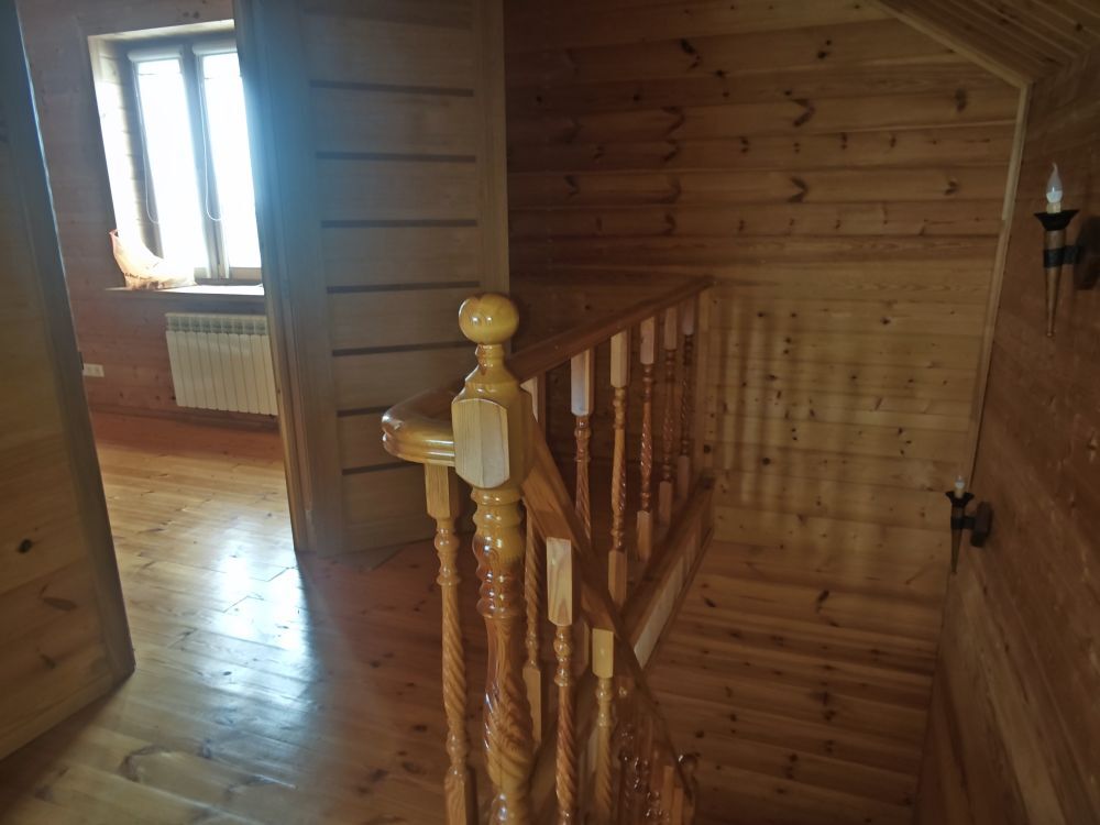 Второе строение- современный 2-х этажный коттедж из блоков, снаружи и внутри - отделка деревянный блок-хаус, по фундаменту здание размером 8*8 м2.