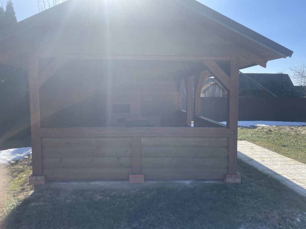 На участке находятся 2 строения, беседка с печью для барбекю, колодец.