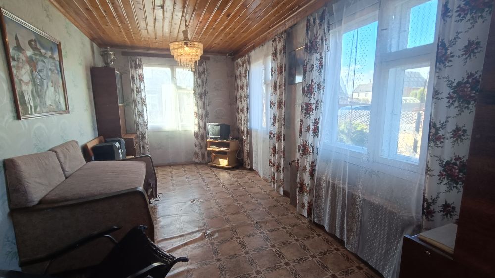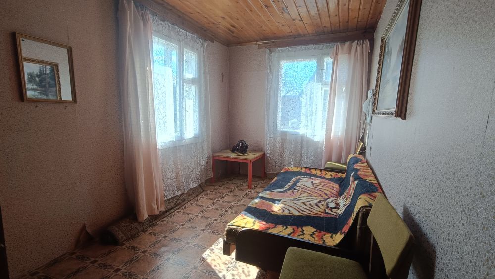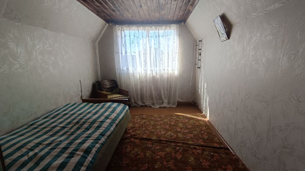 Дом двухуровневый, деревянный. Материал крыши - шифер. В доме четыре просторные жилые комнаты, кухня-веранда. Общая площадь дома 57,2 м.кв.