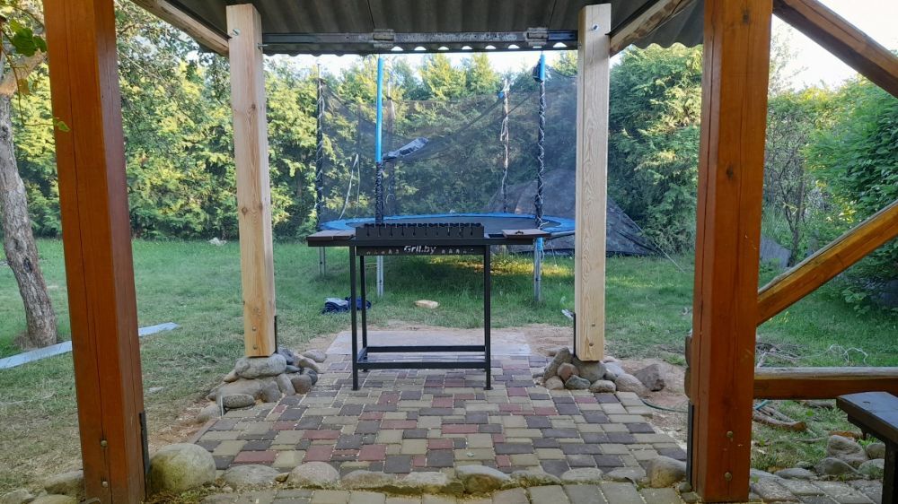 На участке также есть баня из силикатного кирпича с зоной барбекю на пристроенной террасе и мангальная зона.